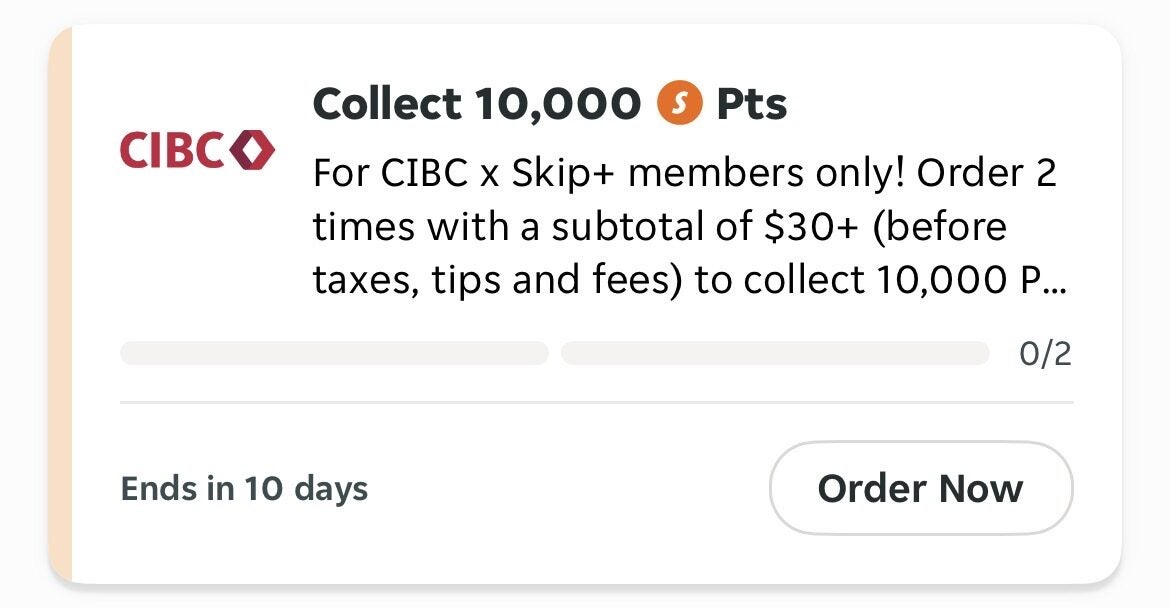 注:Skip 根据折扣前价格评估优惠资格。即使使用了 15 $促销码,本订单仍可计入 Skip+ 会员“2 笔 30 $订单获 10,000 积分”的奖励条件。