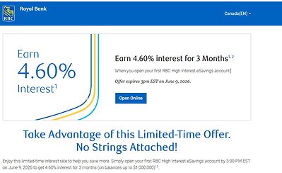 RBC HISA account 90days promotional rate 4.6%