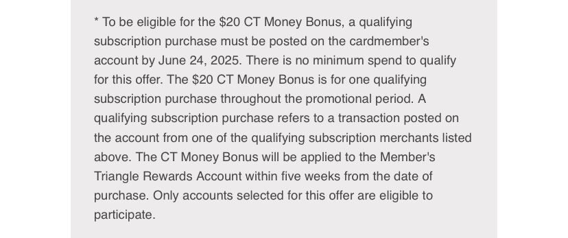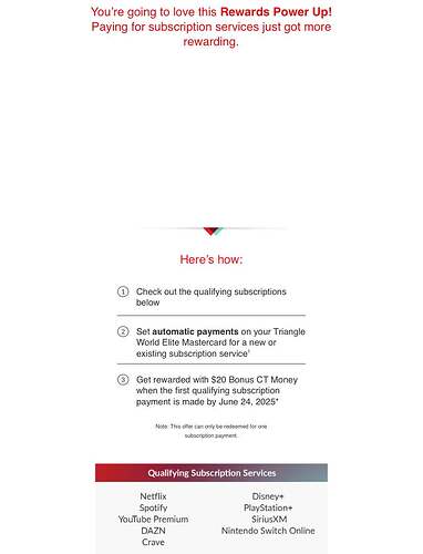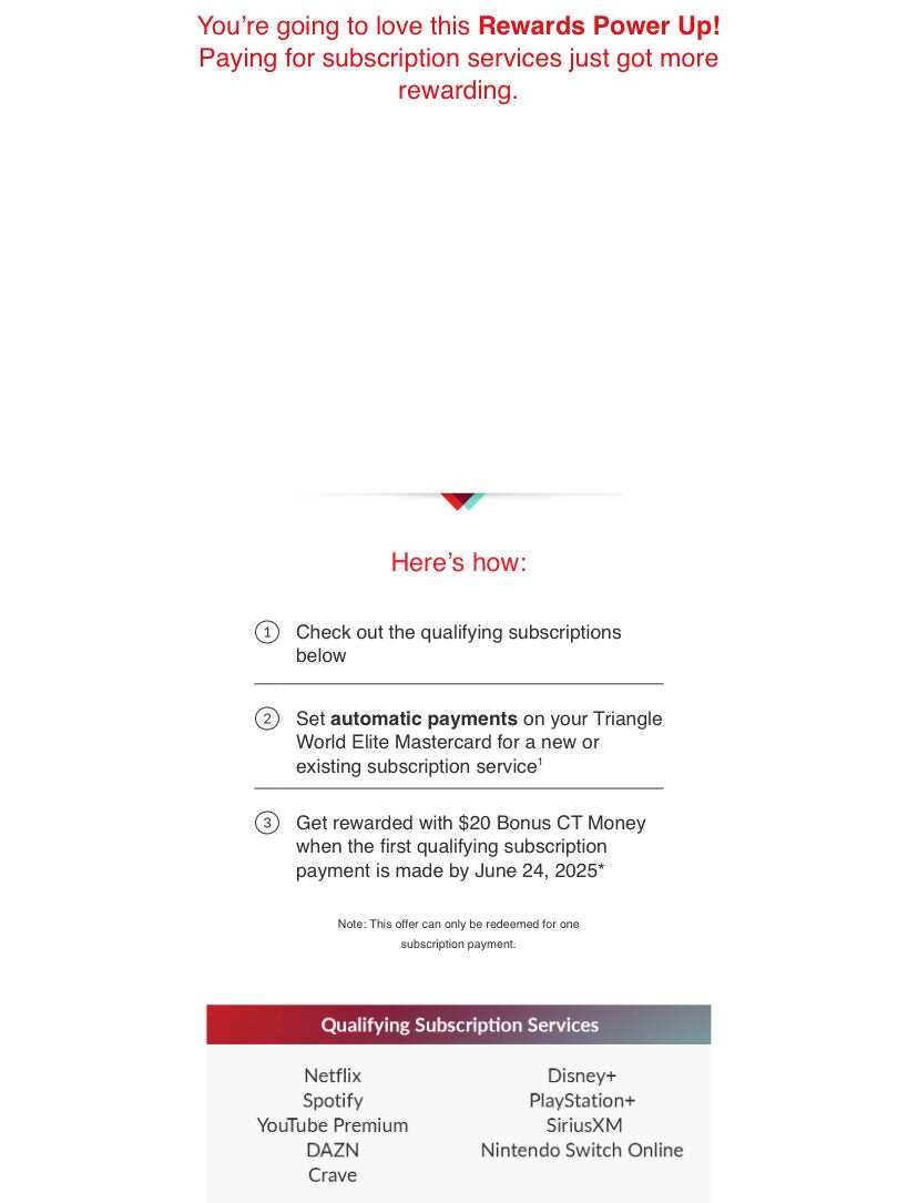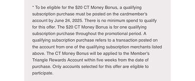 Earn $20 CT Money by paying for Subscriptions - YMMV